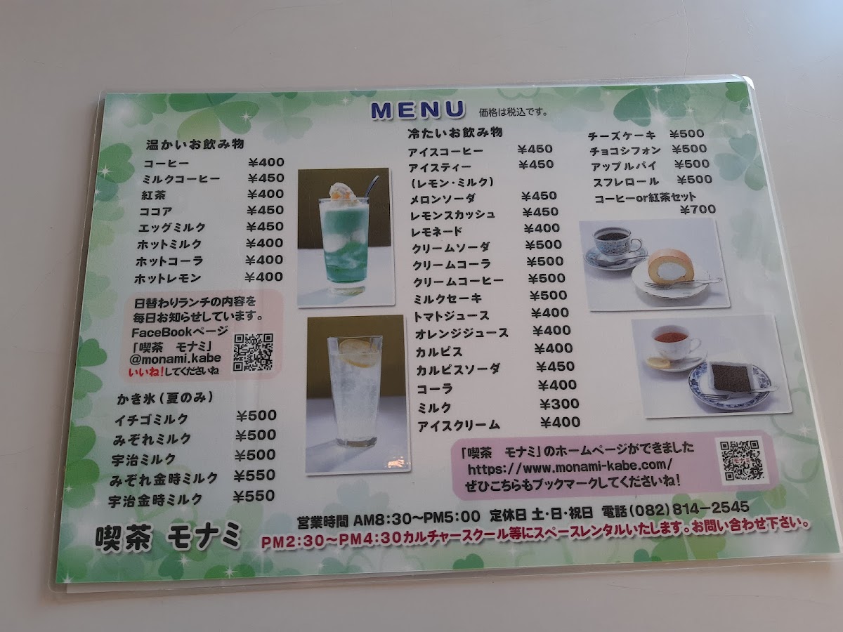 Welcome to Monami, an inviting coffee shop and cafe nestled in the heart of Hiroshima's Asakita Ward. Known for its seasonal, locally-sourced ingredients, Monami offers a delightful daily lunch menu that highlights the freshest catches and vegetables from nearby producers. Diners rave about dishes like the tempura made from small sardines and shrimp, showcasing a perfect blend of texture and flavor.